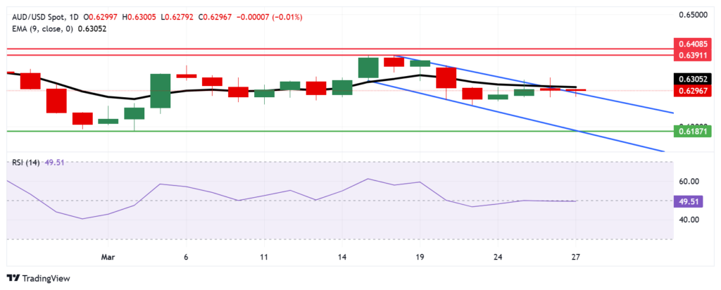 Analisis Teknis: Dolar Australia menguji batas 0,6300 dekat EMA sembilan hari
